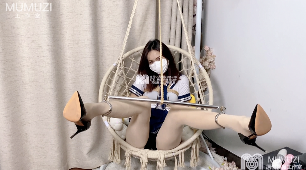 被kb好的可可在吊椅上开心的晃动,并不知道我们要对她做什么,