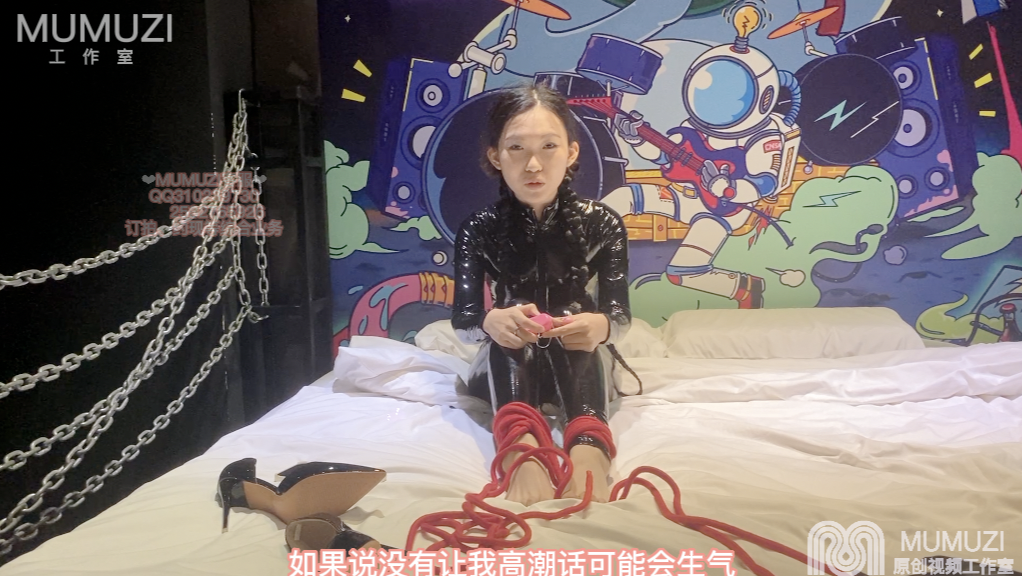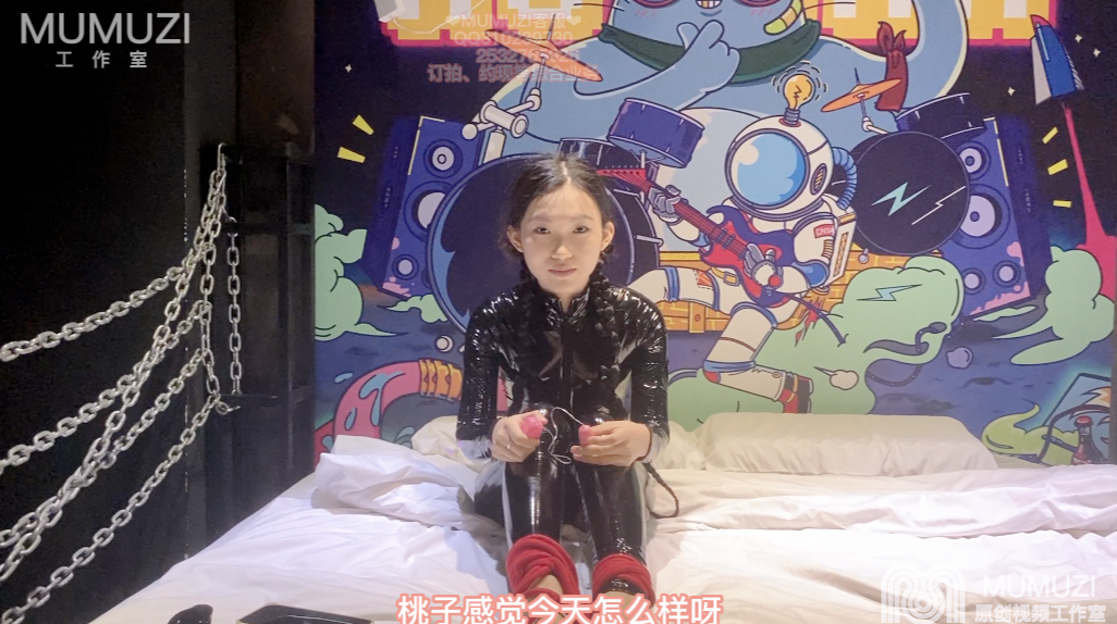 在床上的桃子被栗子用绳子双脚两边束缚,手乖乖的被反手铐着,趴着就像一只等待TJ的小母GOU,栗子