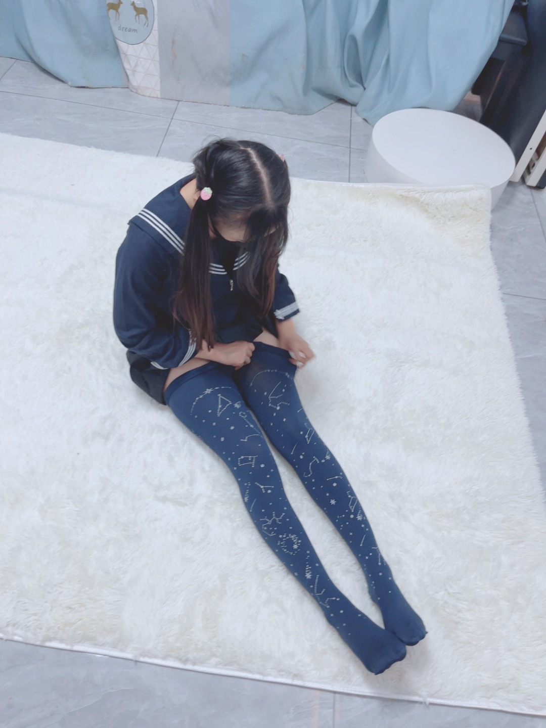 服装:jk、双马尾、印花袜