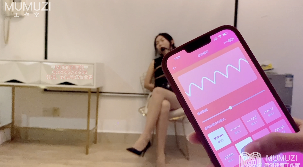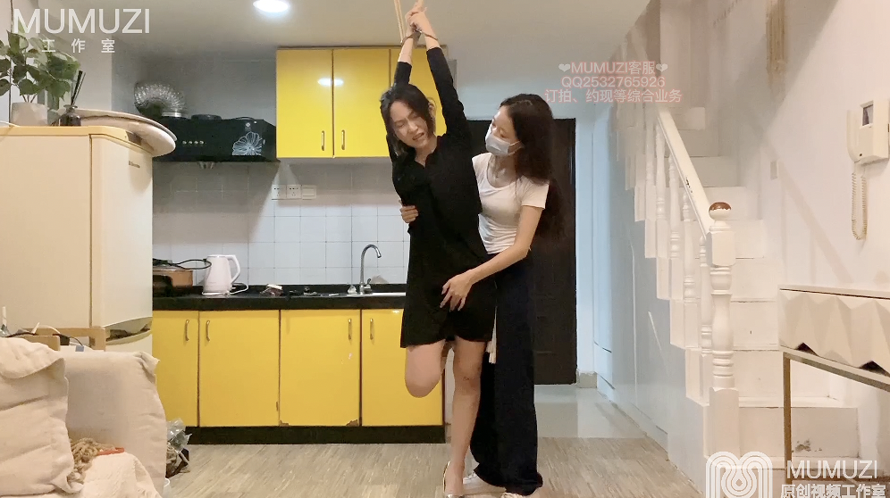 桃子被绑在椅子上,翘起二郎腿,口球堵嘴
